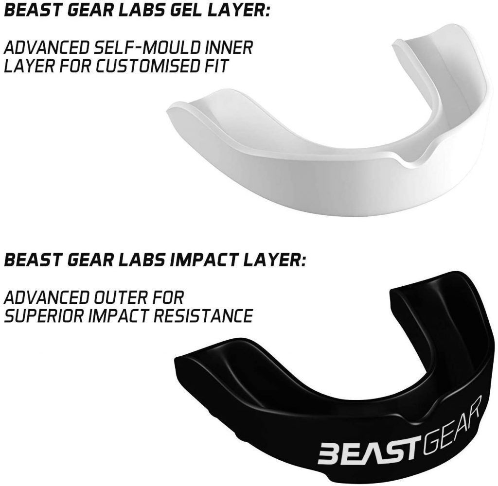 1. Beast Gear. Para nosotros uno de los mejores bucales de boxeo ahora mismo. Cuenta con tecnología moldeable que permite un ajuste personalizado. Protege tus encías y tu mandíbula de manera perfecta, garantizándote la máxima seguridad. Está hecho en materiales de alta calidad, es muy robusto y no tiene látex.